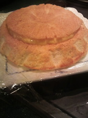 くり貫きいたところへシロップを流し入れ、染み込んだら、カスタードクリームをいれて、生地の蓋をする
