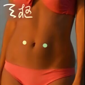 へそから指二本分外側、更に指四本分下のところにあるツボです。