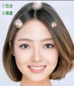 気の巡りを円滑にする百会は肌が敏感になっている時に有効です。頭維は首から上の血流を良くし、顔色を良くします。