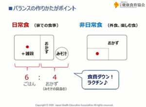 ご飯とみそ汁をベースにおかずを控えるのがゴールデンバランスだと嬉しい論理を展開してます。
