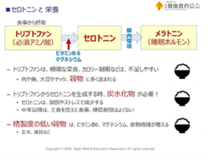 もともと日本人はトリプトファンを米からとっていて、味噌との組み合わせが有効だと話しています。