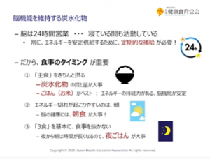 柏原氏は加齢によって食事量が減る人がいるに警鐘を鳴らしています。脳は24時間働いているので定期的にエネルギーを供給する必要があるとまるで鈴木その子師匠です。