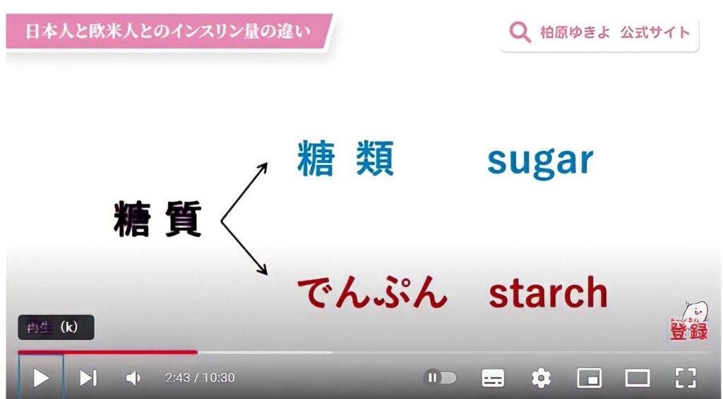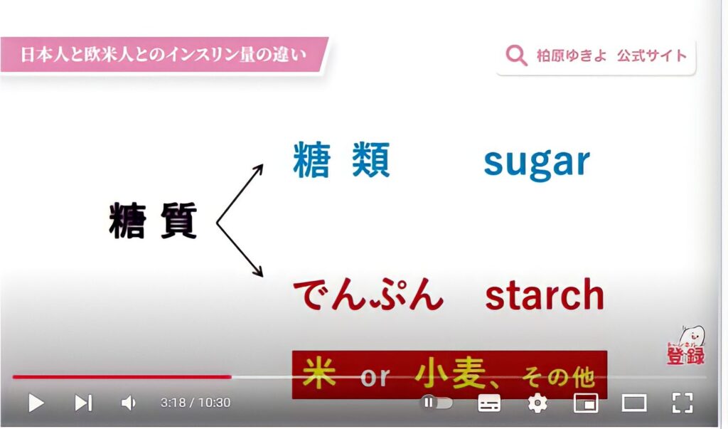 「糖質はシュガーとスターチに分類できます。健康という観念からするとシュガーは摂り過ぎないようにする。スターチは私たちのエネルギー源として重要なものだという考え方です。つまりスターチに関しては適切に撮ることを推奨しています。」