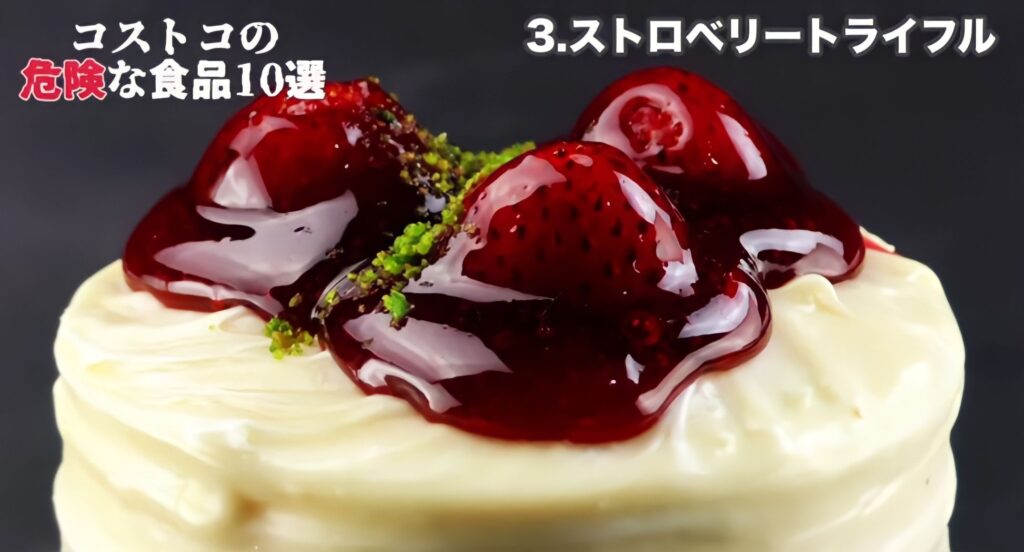 これはイチゴがたっぷり使われたスィーツで華やかな見た目から人気が高いようです。所謂イチゴショートケーキの豪華版(見た目ですが)イチゴがとても危険性が指摘されています。