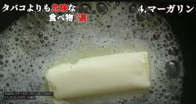 いうまでもありませんが、バターのフェイク品です。安価でバターに似ているので重宝がられていますが、言わずもがなトランス脂肪酸を含む危険な食品です。