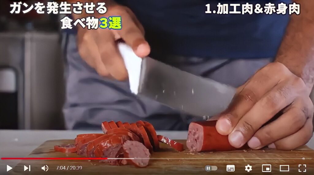 ハムやソーセージなどの加工肉と赤身肉は大腸がんの発症率を上げることが確実と言われています。国立がん研究センターによると全世界地域の人を対象とした疫学研究、動物実験、メカニズム研究から科学的根拠に基づく総合的な判断として加工肉は人に対して発ガン性があるとしました。大腸癌は動物性たんぱく質の加熱などから生成される発ガン物質によるものと言われているため加工肉や赤身肉の摂取量が多いとガンリスクが高まるのです。
