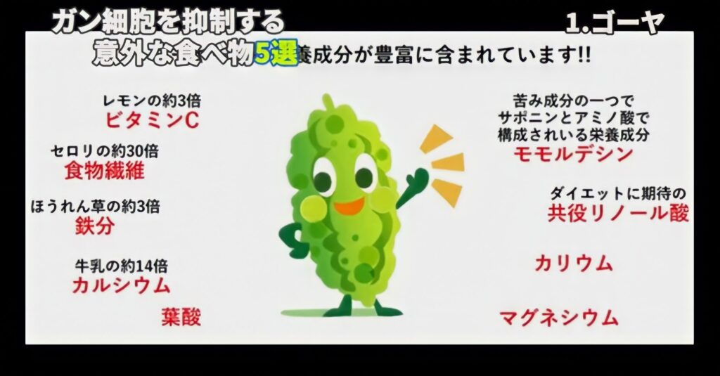 アメリカのコロラド大学のガン研究センターの研究チームによるとゴーヤから抽出した成分が乳がん細胞を抑制する働きがある事が分かりました。その後の研究においても膵臓ガンや大腸ガンを死滅させる働きがある事が分かっています。