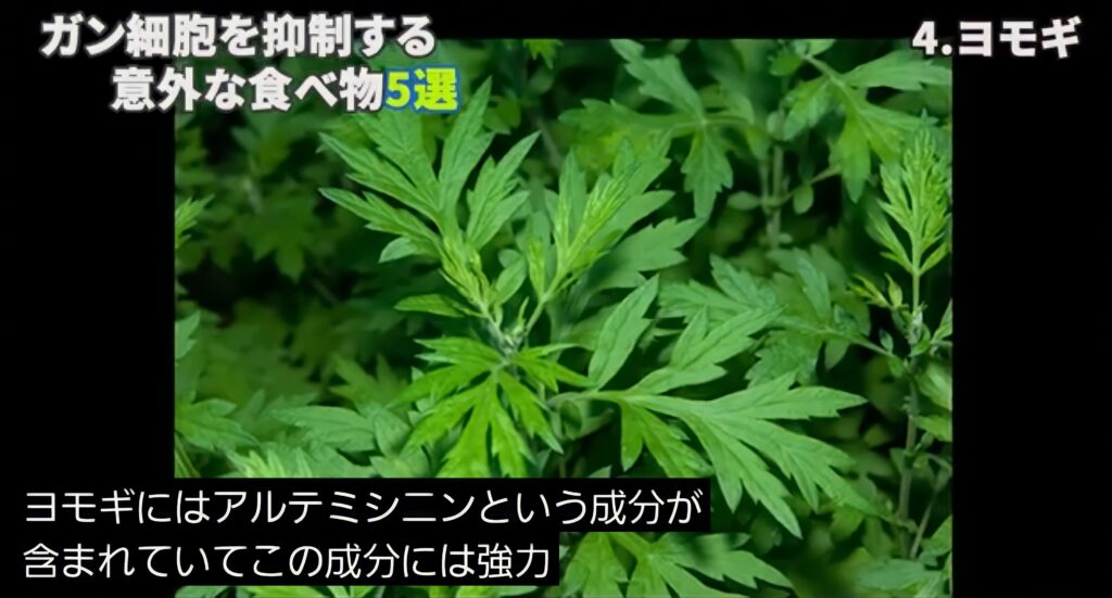 ヨモギにはアーテミシニンという成分が含まれていて、協力ながん抑制効果を有しています。一つの細胞で12000個ものがん細胞を死滅させたという報告があり、これは抗がん剤の34000倍もの効果であることが明らかになっています。ガン細胞は増殖に際して多くの鉄分を必要としますが、アーテミシニンがこの鉄に反応するため直接的に効果を発揮することができるのです。しかしながらアーテミシニンの摂取には副作用が伴います。
