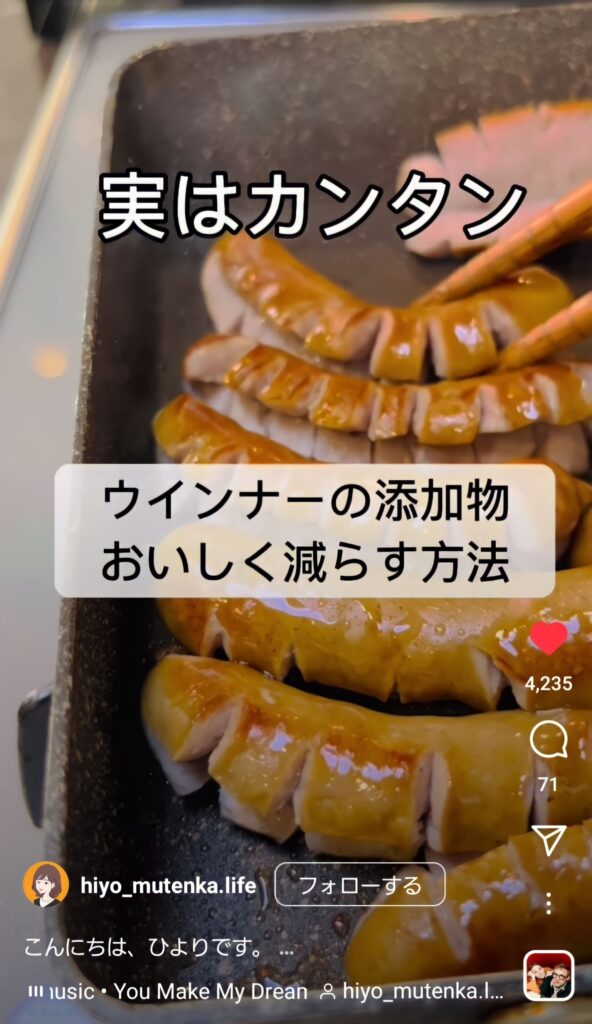 投稿では切り込みを入れてボイルすることで、いくらか含有していた添加物を減らすことができると説明してました。