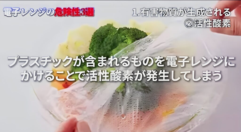 電子レンジを使用する際にプラスチックが含まれているものを入れて加熱してしまうとこれらの危険性がある活性酸素が発生してしまいます。