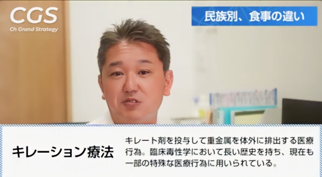 こうした許容量を超えた白人たちは通常キレーション療法を勧められるそうです。この療法はキレート剤を投与され、重金属を排出する医療行為で、臨床毒性学において長い歴史を持ち、現在も一部の特殊な医療行為に用いられるそうです。