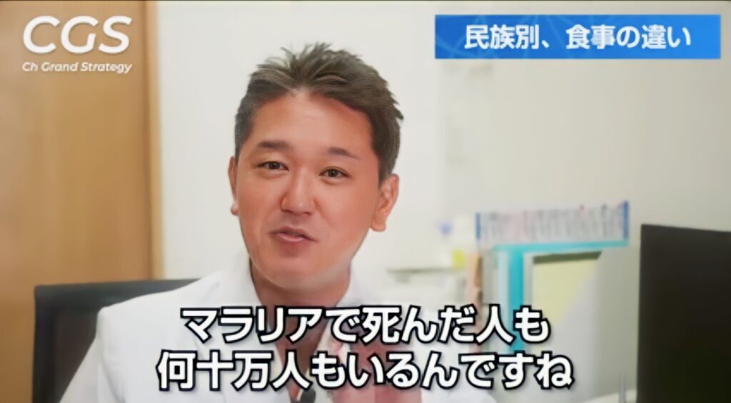 理由は日本にはマラリアなどないからです。東南アジアの人たちはマラリアに罹っても死なないという遺伝子を持っている人たちだけで生き残っているのです。