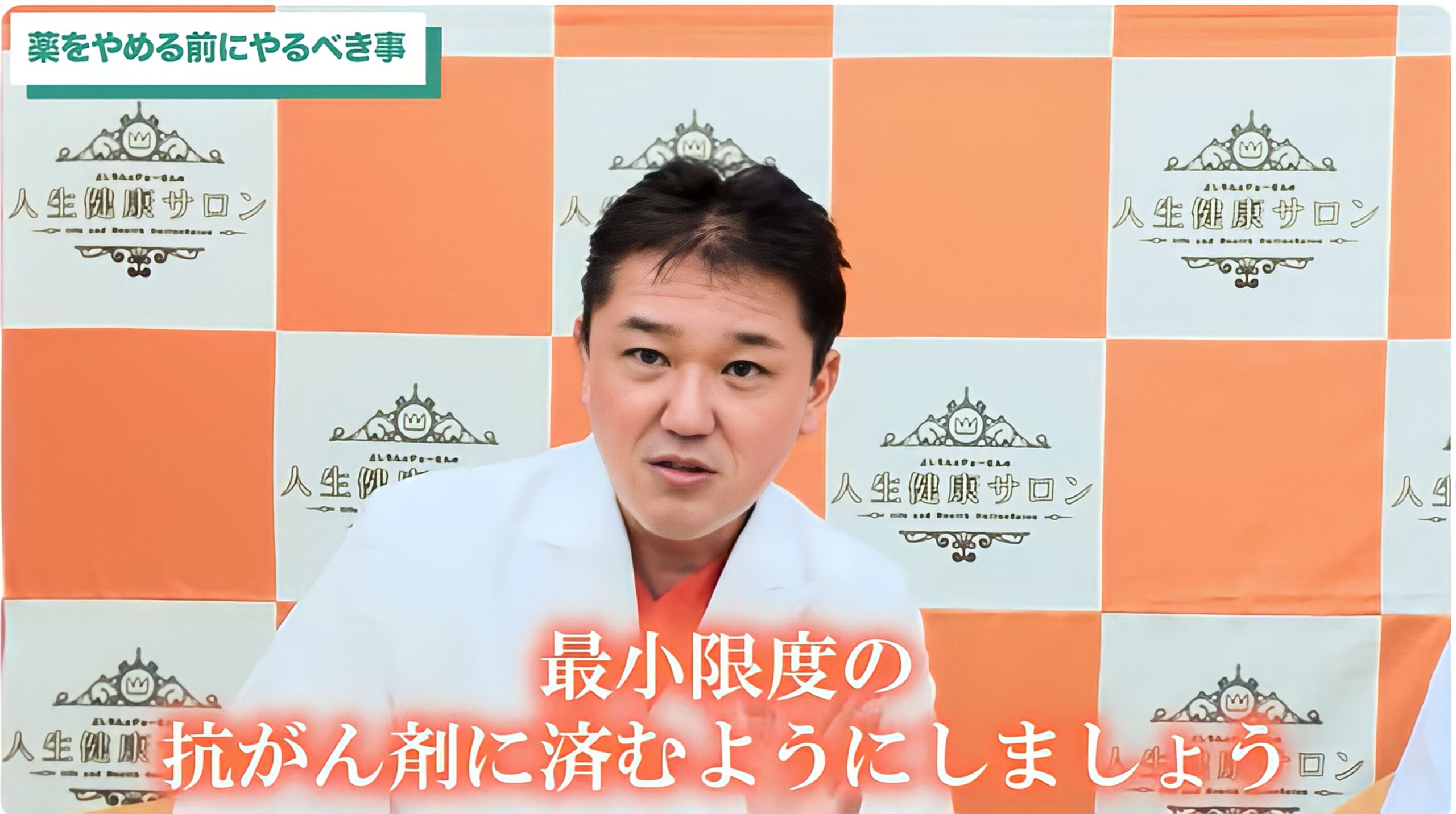とはいえ、抗癌剤を使わない方法はあります。でもその前に癌にならないための原因除去を食生活や睡眠、呼吸法、入浴などのやるべきことを全部やってそのうえで検査をしてどうするか、何も原因除去せずやるかやらないかは話す土俵に上がっていないのです。